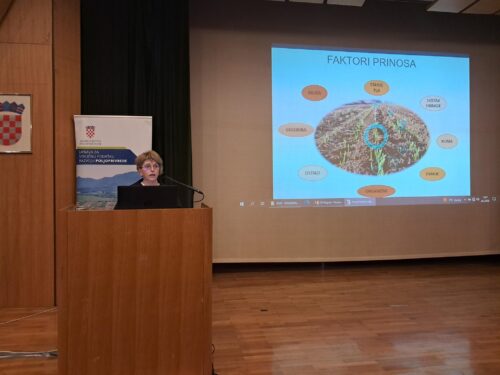 Suzana Pajić je govorila o svim faktorima koji utječu na prinos poljoprivrednih kultura te naglasila važnost pokrovnih usjeva i poznavanje agroekoloških i klimatskih uvjeta kako bi se postigao najbolji prinos. Značajno mjesto u popravljanju kvalitete tla imaju postrni i pokrovni usjevi, a neizostavna je uloga stajskog gnoja u primjeni na poljoprivrednim površinama.
